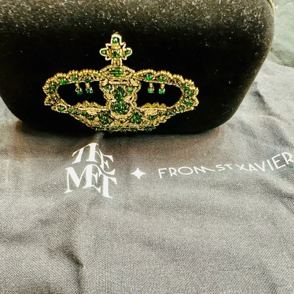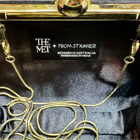 The Met & St Xavier Black and Gold Beaded VelvetRegal Crown Clutch