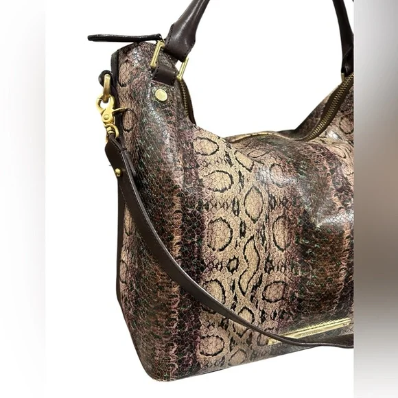 A gorgeous bag - and a rare find!The snakeskin textured hobo bag comes to you in Violet Cusco,, and it’s just so fun! It’s primarily brown, with use of purple and green. The...