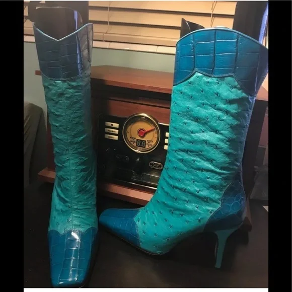 New Blue Ostrich & Alligator cowboy boots! Awesome!