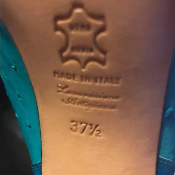 These are from a high-end designer in Palm Beach Florida. New, old stock (may have some areas with glue showing along seams.) Super Soft Ostrich quill and alligator highlights. Some small color rubs on the seam of the heels. Real Ostrich is stamped on the boots. (#1008) please check my other listings for other sizes and other colors of these boots and other alligator and ostrich shoes.