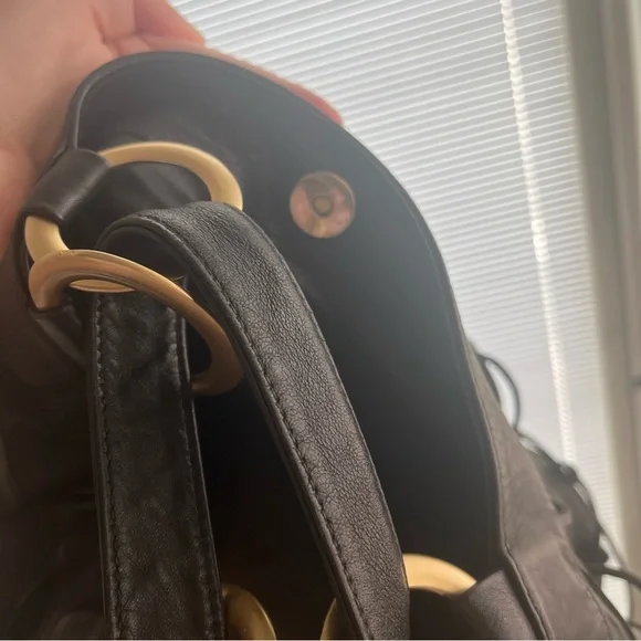 Large Black soft genuine leather shoulder bag Macramé leather netting layerLinedMade in ItalyPreowned conditionGold hardwareBag fashion trend !All my items are photographed...