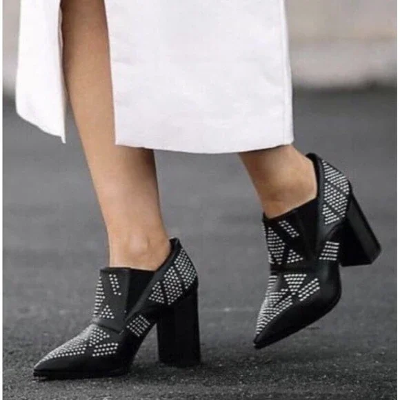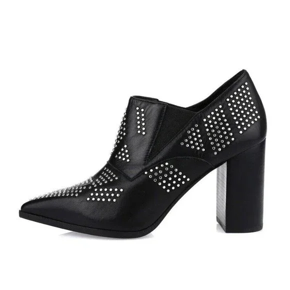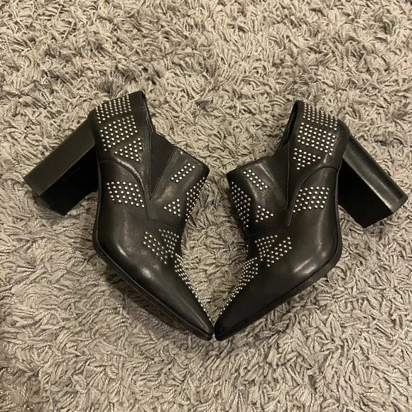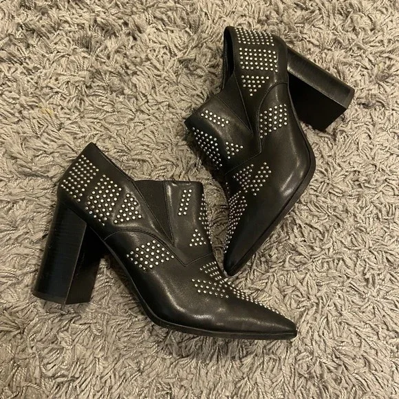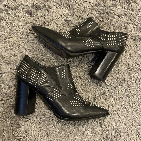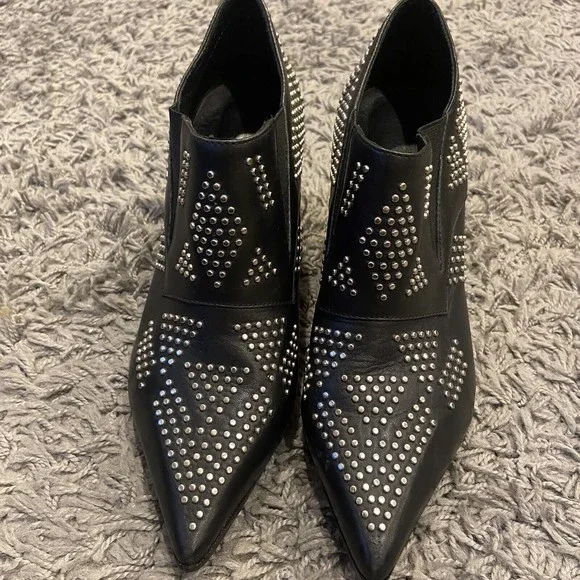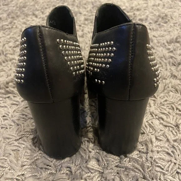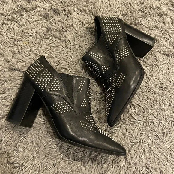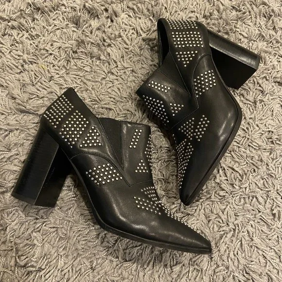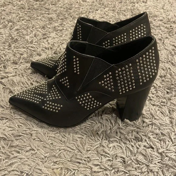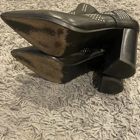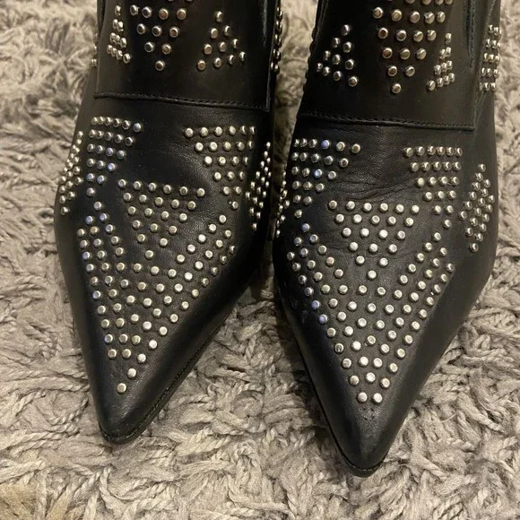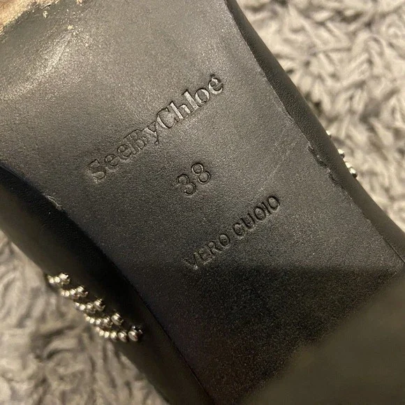 See By Chloe Black Silver Studded Leather Ankle Booties Shoes Size 38 / US 8.