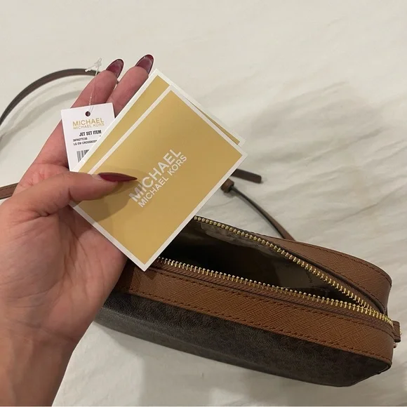 NWT Michael Kors Jet Set Logo Brown Crossbody Bag Purse