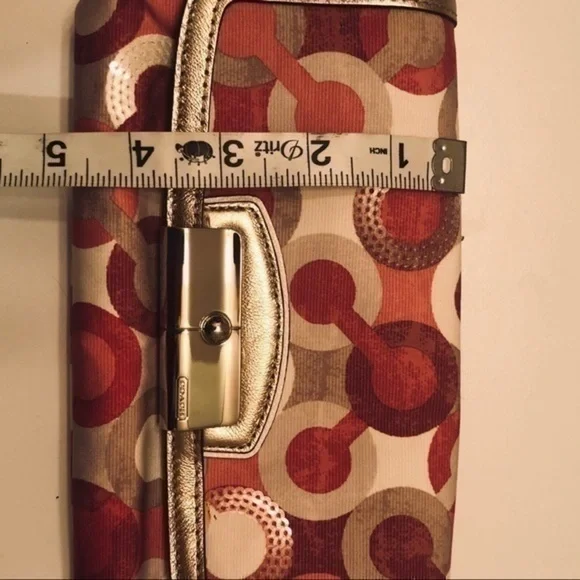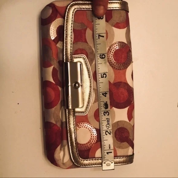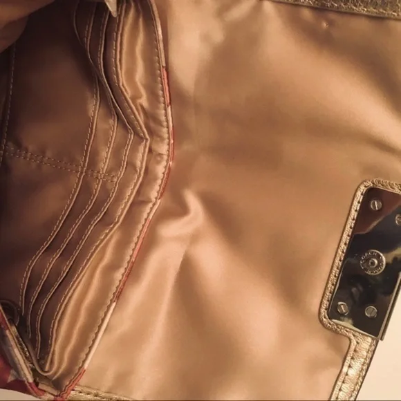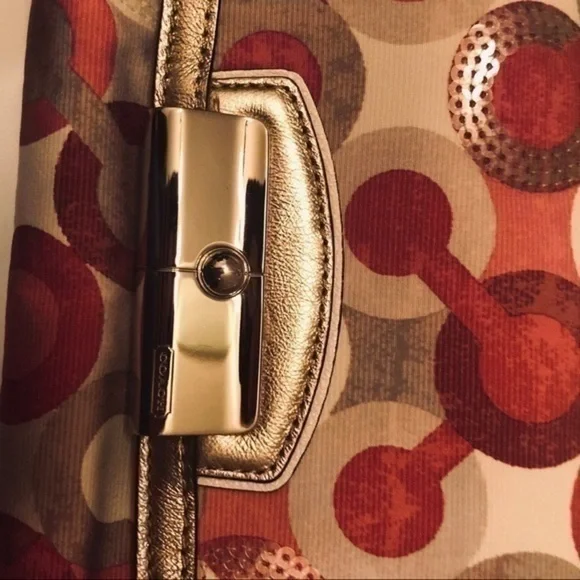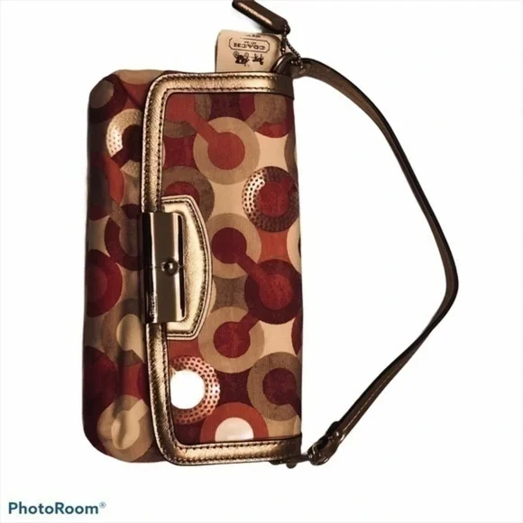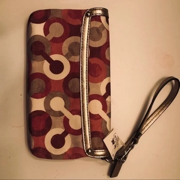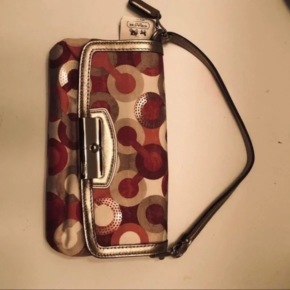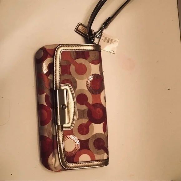 Coach optic c pink metallic wristlet bag clutch