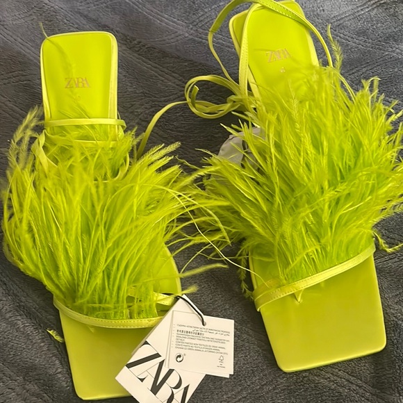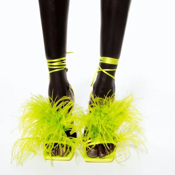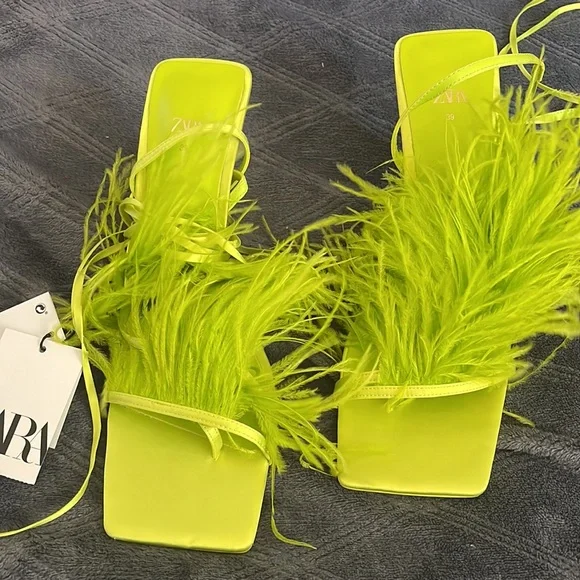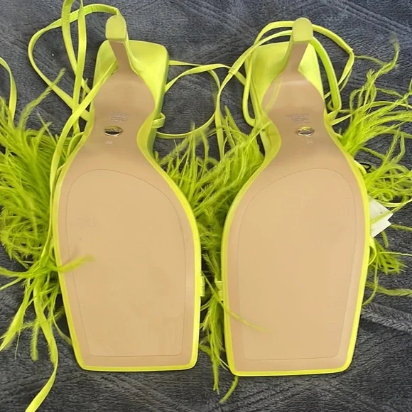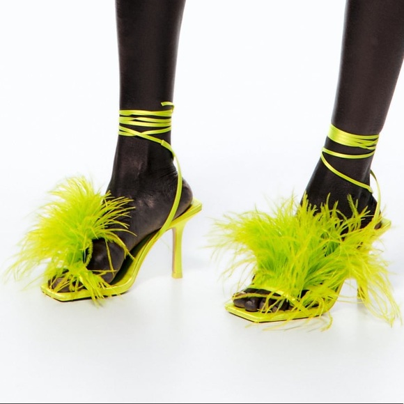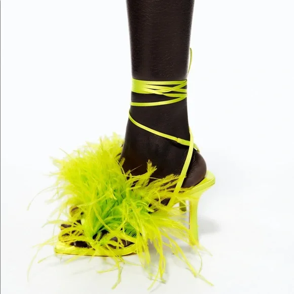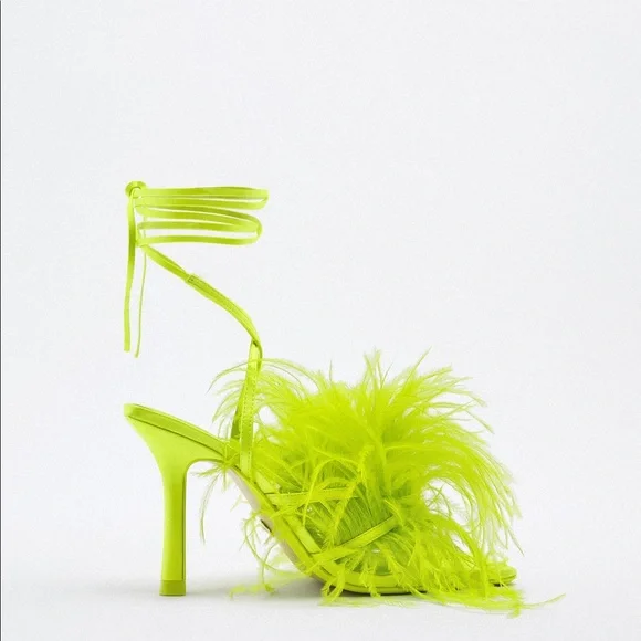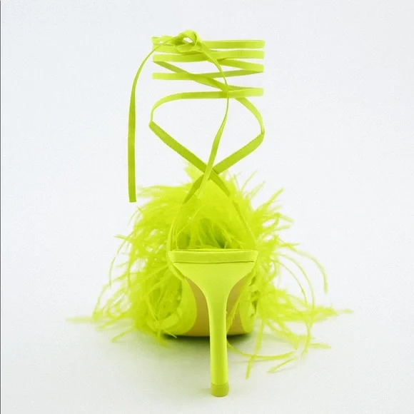 Zara Lime High Heel Lace Up Feather Sandal Size 8 & 9 UK 39 & 40