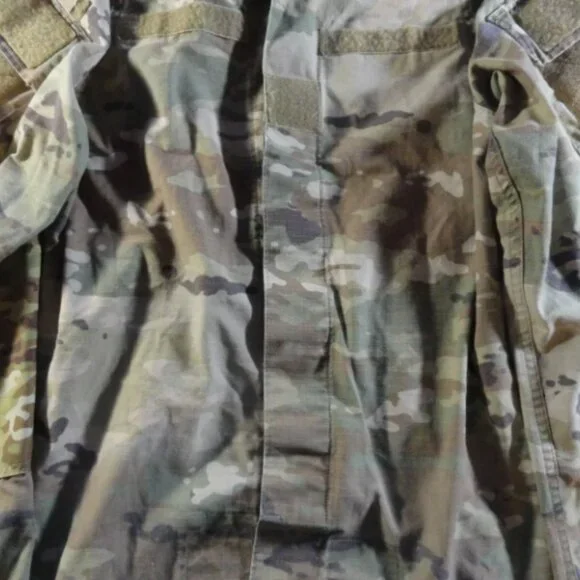 RC 1978OCP ARMY SCORPION IMPROVED HOT WEATHER COMBAT UNIFORM IHWCU JACKET SMALL REGULAROCP SCORPION CAMO MILIARY LONG SLEEVE SHIRT 38X27 SRSIZE: SMALL REGULARCONDITION: PREOWNED DEFECTS: NONE FORMATION AND INSPECTION READY