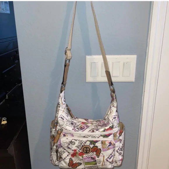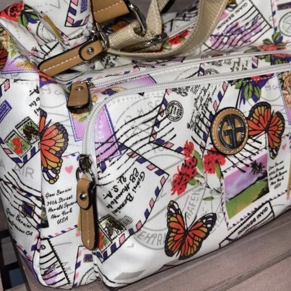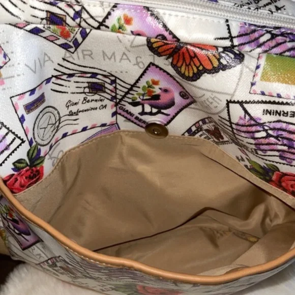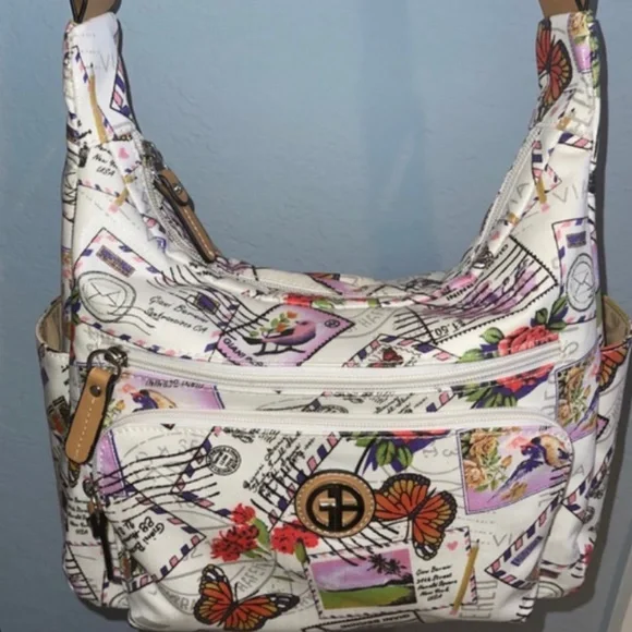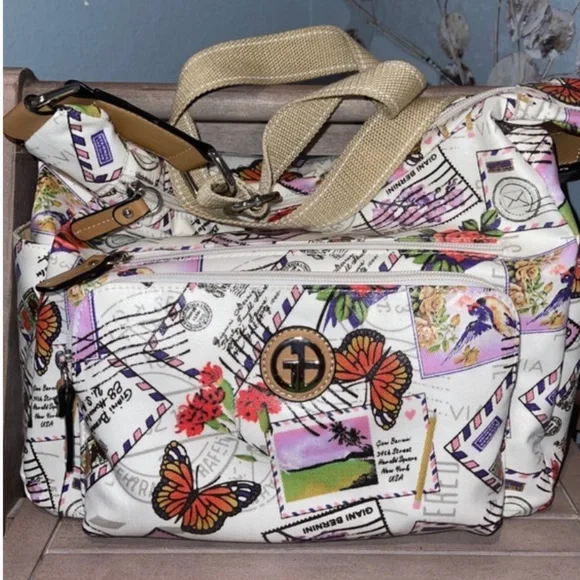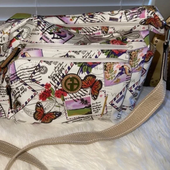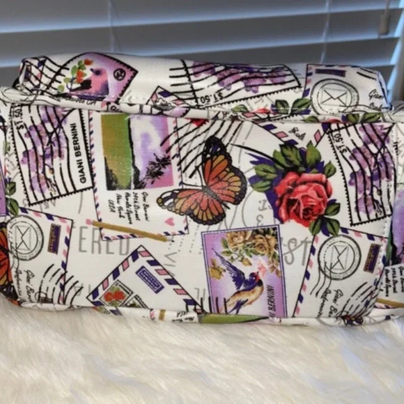 20 bin 5Now this beautiful and fun bag is something to write home about!Meet the fun and whimsical Giani Bernini Canvas Potcard Small Crossbody Bag.Measurements: 12”width,...