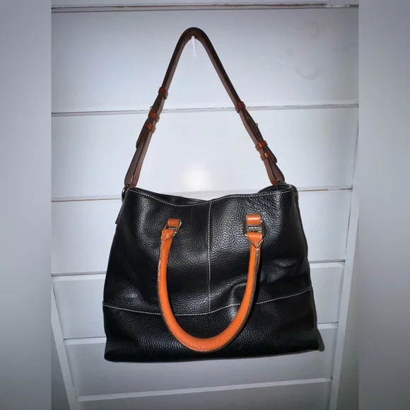 Elevate your style with the Dooney & Bourke Black and Tan Leather Tote. This elegant bag combines functionality with timeless design, perfect for any occasion. Crafted with premium leather, it offers durability and sophistication.