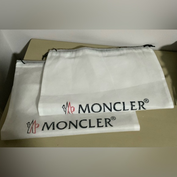 Step into iconic Italian luxury with these stunning black and purple Moncler low-top sneakers. Featuring high-quality leather, minimal branding, and signature European style, they’re both sporty and chic.The purple accents add a unique pop to this otherwise classic design. Small blemish on back of right shoe. See picture.Details:Authentic MonclerIncludes new Moncler dust bags.Smoke-free homeCarefully storedPerfect for pairing with elevated streetwear or designer staples.