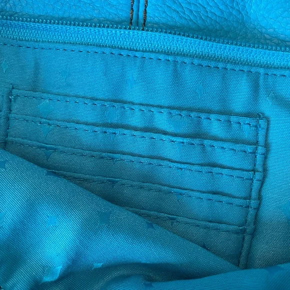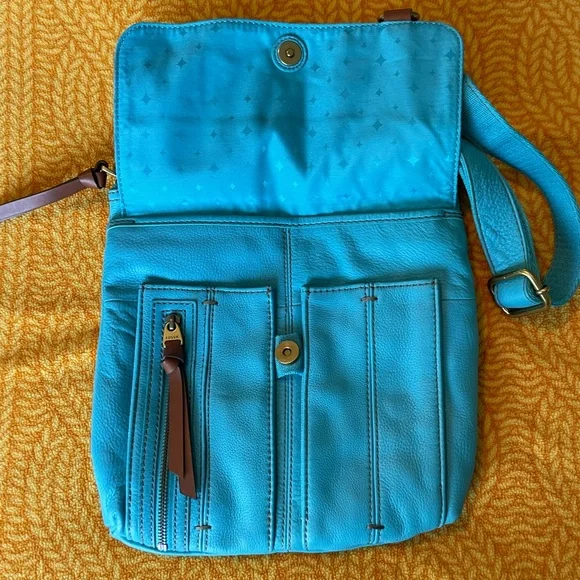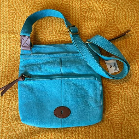 Fossil Morgan Traveler Tidal Blue Crossbody Bag. Originally $168New with tags and info card.Multiple pockets in both the front and the back for lots of items. There is one zippered pocket the front and two smaller pockets under the front flap. Also a ring attached for keychains.Inside the first flap is a big open pocket wallets, keys, and more. The top of the bag opens with a zipper and has a smaller zippered pocket inside. The back side has a zippered pocket with card slots. The color is a vibrant and beautiful blue that will definitely make a statement.This bag has been in storage through a move and a pregnancy. It has never been used however it did get two very small scratches on the front flap just from storage. They are shown in the last three pictures.Measurements are taken lying flatTop to bottom of bag- 11”Side to side- 10.5”Please let me know if you have any questions. Offers welcome. All items cross posted.