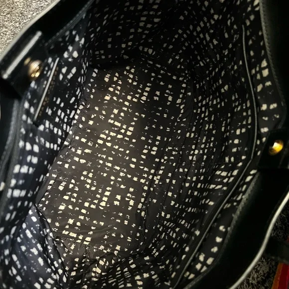 Marc jacobs saffiano leather tote .Excellent condition.Clean Inside and out. Double shoulder strapsSpacious lines interior opens wide.Snap Closure.Black and white interior...