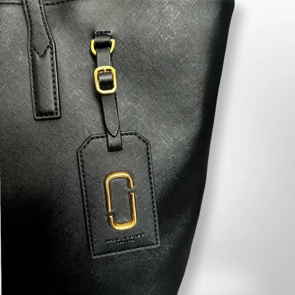 Marc jacobs saffiano leather tote .Excellent condition.Clean Inside and out. Double shoulder strapsSpacious lines interior opens wide.Snap Closure.Black and white interior print.Zip wall pocket.2 flat wall pockets.Base Length: 13 inLongest Length : 19 inHeight: 11.25 inWidth: 6.5 inDrop: 8.75 in