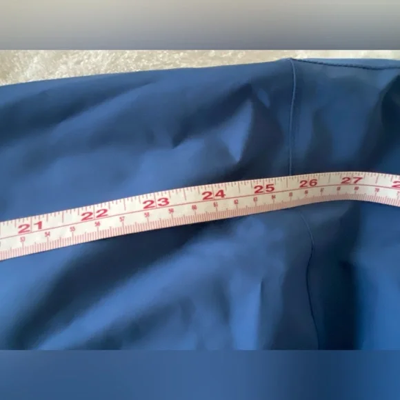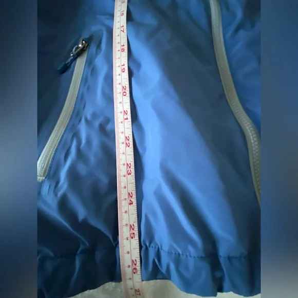 Waterproof windbreakerPreowned in excellent conditionReflective material on seams and zipperZippered pockets Drawstring at waist100% PolyesterMachine WashableMen’s size small