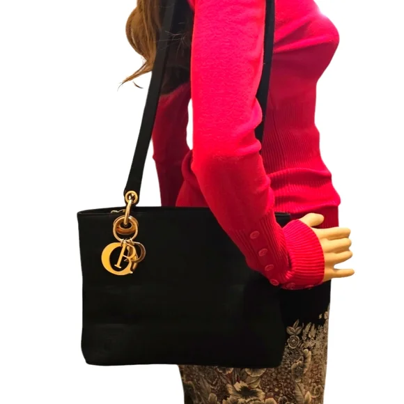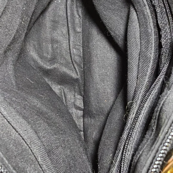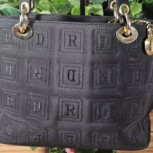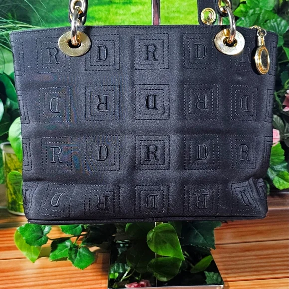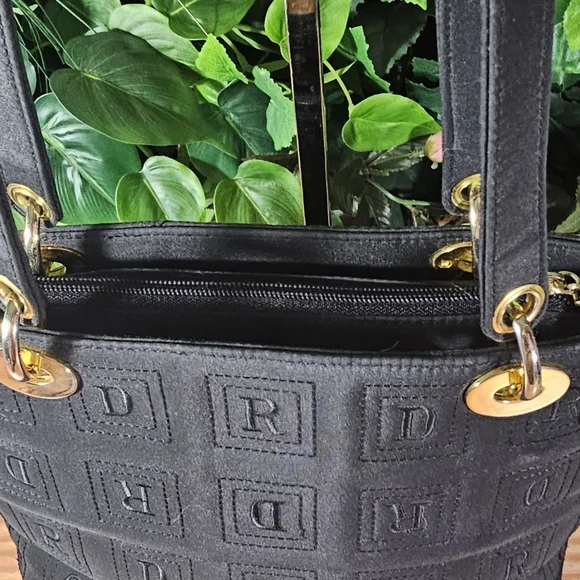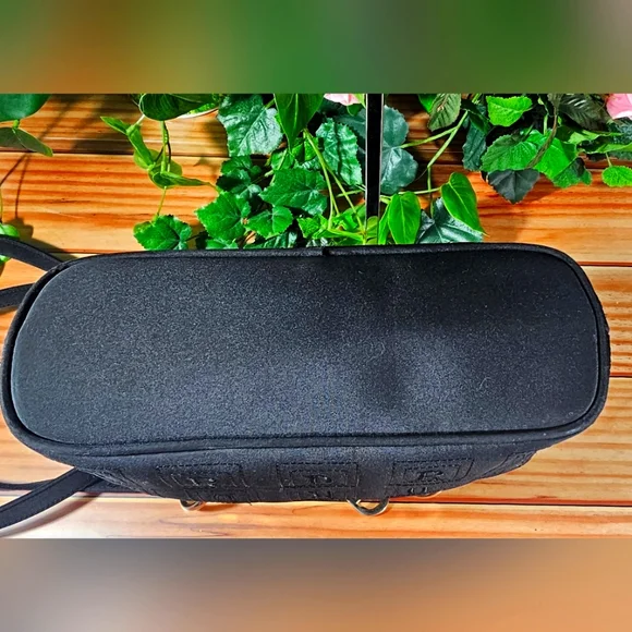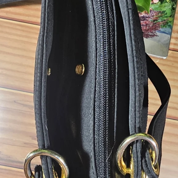 Non-branded, beautiful designer inspired fully nylon ´Black´ bag purse. Comes with gold tone hardware, which is a little rubbed and has some scratches. The bag has a zip top closure plus two interior zipper pockets.This pre-love bag is in very good condition!Clean inside and out with no damage from a non-smoking home.It has two shoulder straps with a 15.5" dropMeasurements:7.5" tall, 11" width, 4" depth