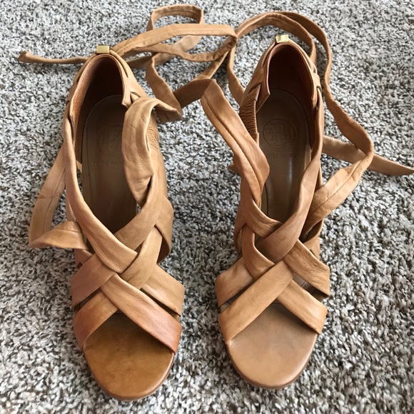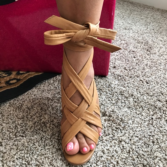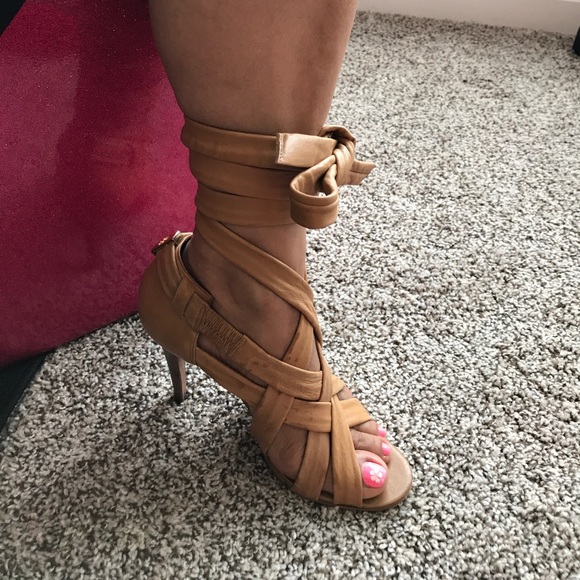Great condition very beautiful wrap up heels. All leather. Royal tan color. 4 inch heels.