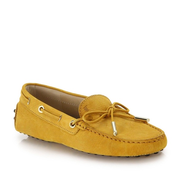 Tods Gommini Tie Yellow Nubuck Leather Drivers