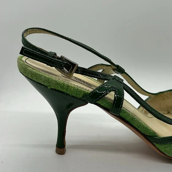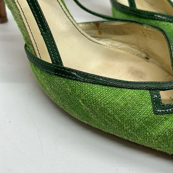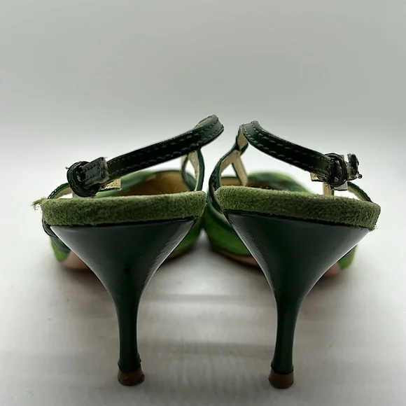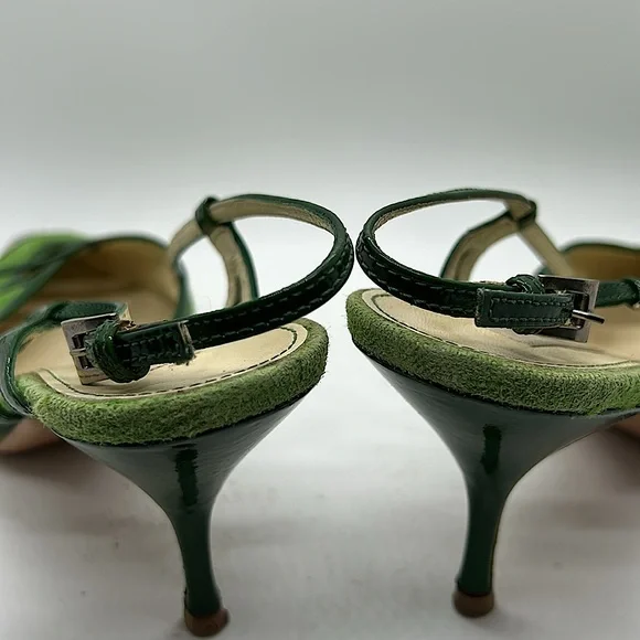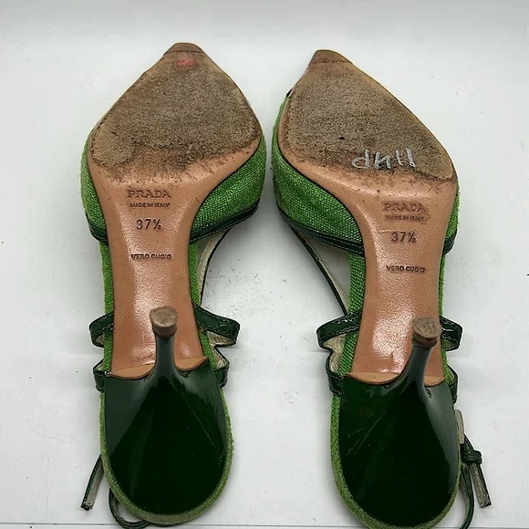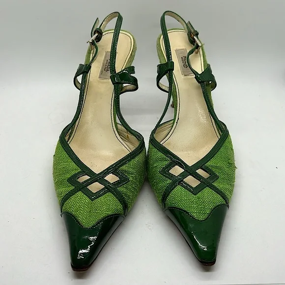 Prada Authenticated Vintage Green Pointed Toes Heels Shoes **Sz 37.5/US Sz 7.5**