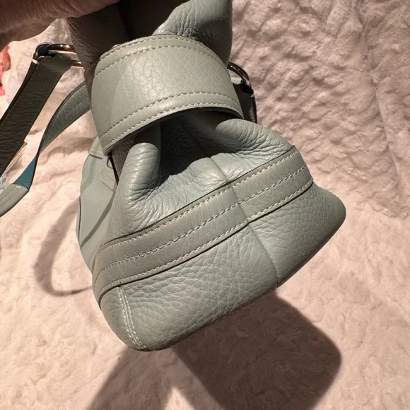 Vintage COACH Satchel in great condition• ALL SOFT LEATHER• Color is light blue green• has hang tag with different color on backside• Silver hardware including 2 faux belt...