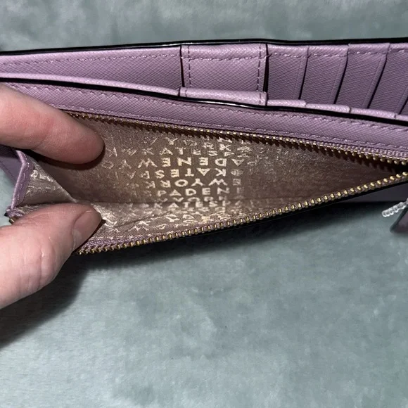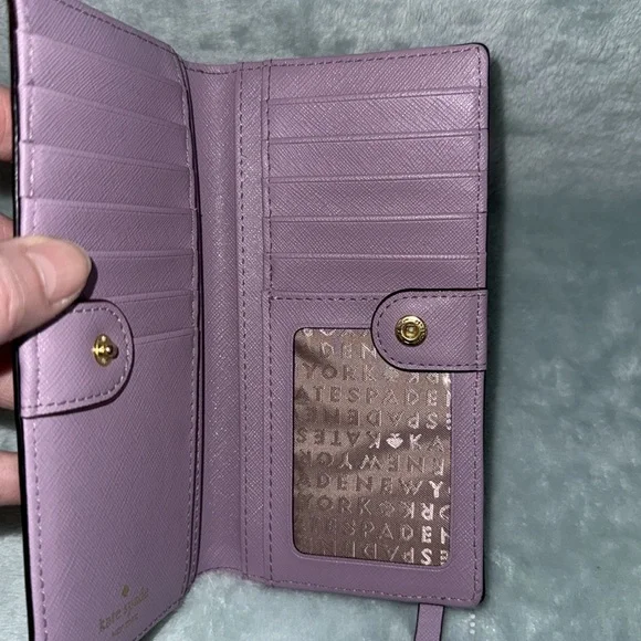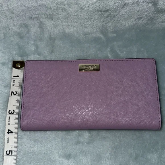 kate spade. Elegant and stylish, this kate spade wallet in a beautiful purple hue is perfect for any occasion. Crafted with attention to detail, it offers both functionality and fashion.Tiny spot on wallet. Please see photos.
