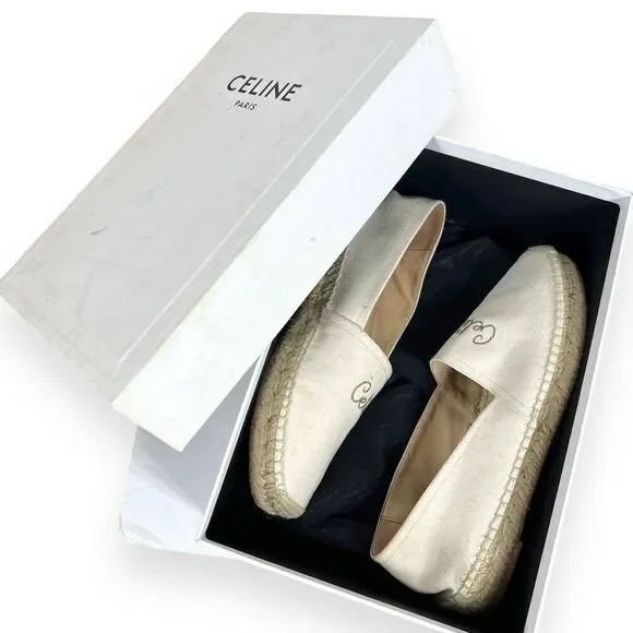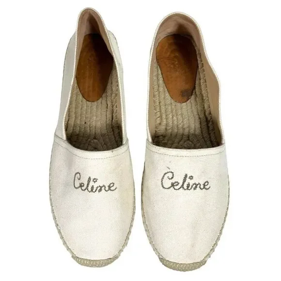 CELINE Embroidered Logo Triomphe Flat Espadrilles Cream Womens EU 40 US 10Size:US 10 EUR 40Good preowned condition, comes with original boxAlways shipped promptly and packed neatly. Bundles of +2 receive an extra discount.