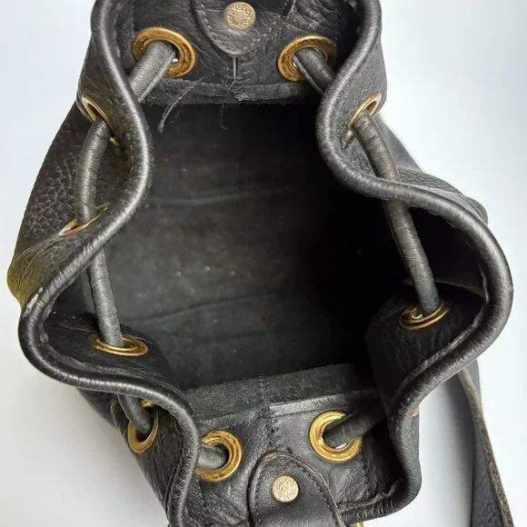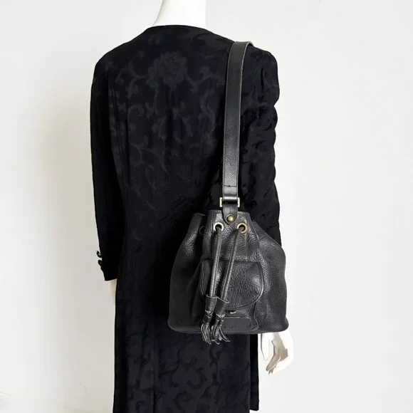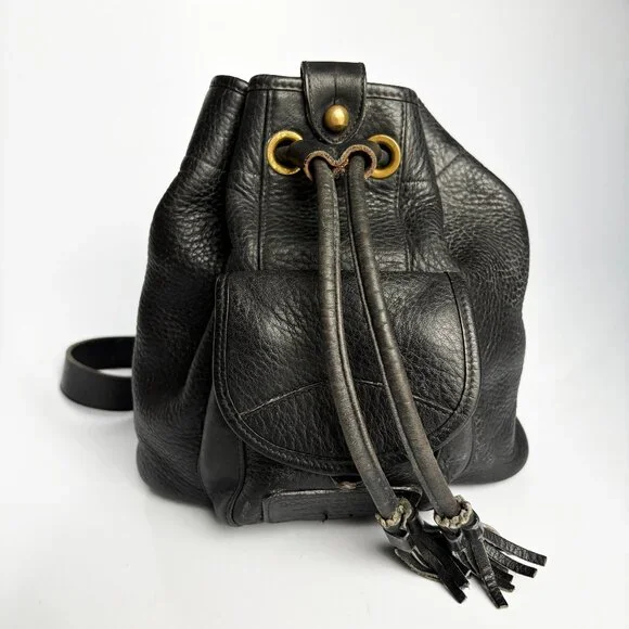 Dooney & Bourke Small Sling Bag Black Leather Drawstring Crossbody Vintage