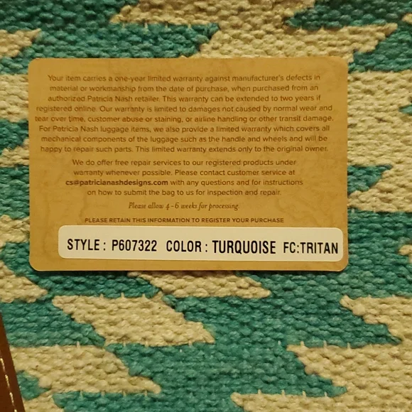 Nwot Patricia nash bagturquoise aztecChennai bag