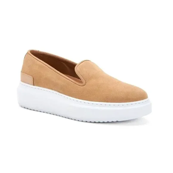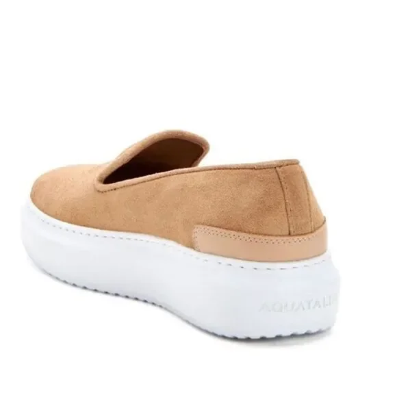 Aquatalia Lanie Loafers Slip On Platform Sneakers Shoes Suede Cappuccino Sz 9.5