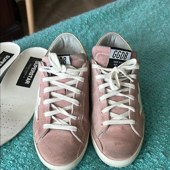 Golden Goose Pink Suede Sneakers with Vintage Aesthetic