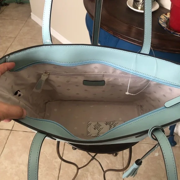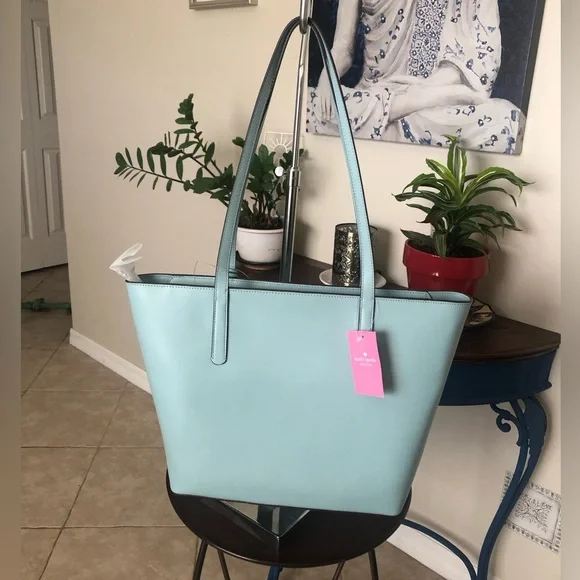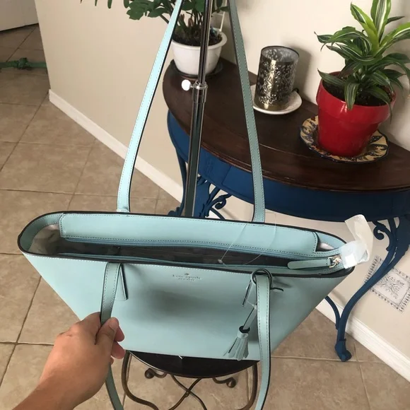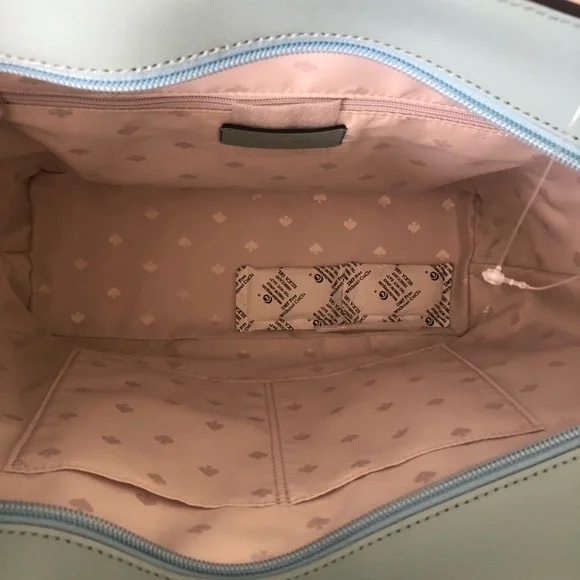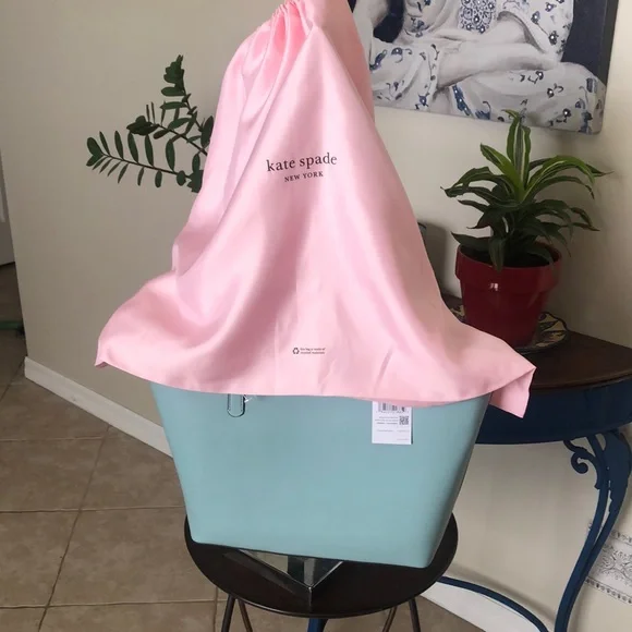 NWT Kate Spade large tote bagZippers along the topEmilia Smooth Leather Large ToteComes with a pink dust bagApprox: 10 1/2 x 16 x 2This was an accidental purchase and the seller refused to cancel so I was forced to keep this bag. It’s beautiful but not for me during this time in my life. ❤️
