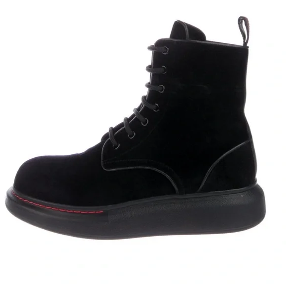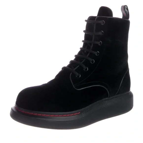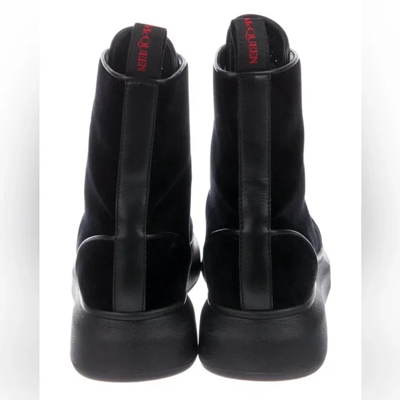 Alexander McQueen Ankle Black Velvet Combat Book w/Leather Trim Women’s Size 9