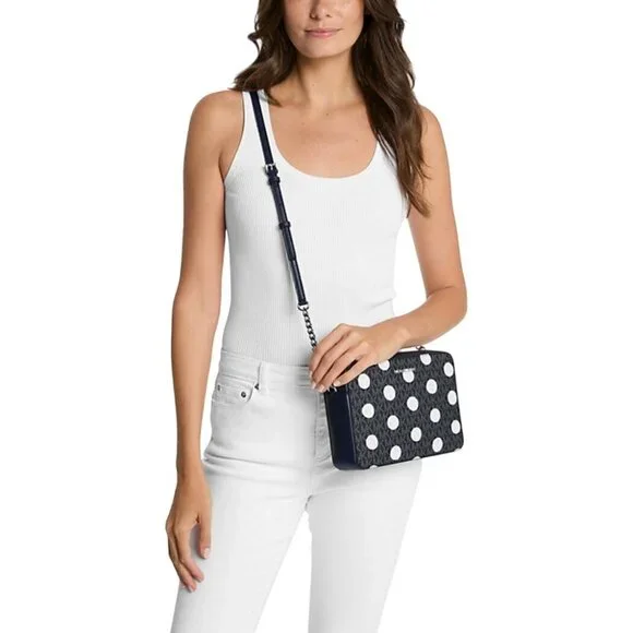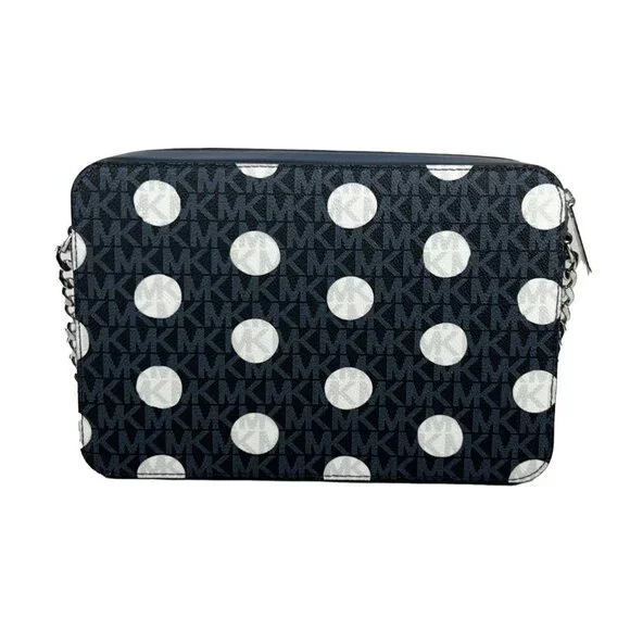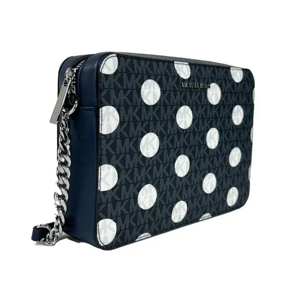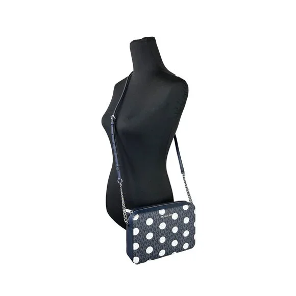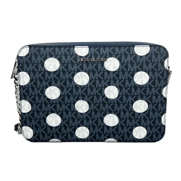Style: Michael Kors Jet Set East West Large Crossbody (Navy) Material: PVC /LeatherFeatures: Zipper Closure, 2 Interior Slip Pockets, 22" Adjustable Crossbody Strap, MK Name Plate on FrontMeasures: 9.5” W x 6” H x 2.5” DSKU 31010All offers are welcome! Professional seller, (Please look at our pictures as that is exactly what you are purchasing)Once payment has been received, the item will be shipped out within one business day or earlier. Once the item is shipped, tracking information will automatically be uploaded. All purchases after 12 pm (EST) will be shipped the next business day.Tags: Designer bag, Classy bag, Luxury Bag, Classic, Feminine, Cute bag, Party bag, Night out, Gift, Crossbody, Satchel, Handbag, Purse,retroglam, modernroyalty, royalty, regal, Skirtsuit, careerchic, formal, businessformal, businessprofessional