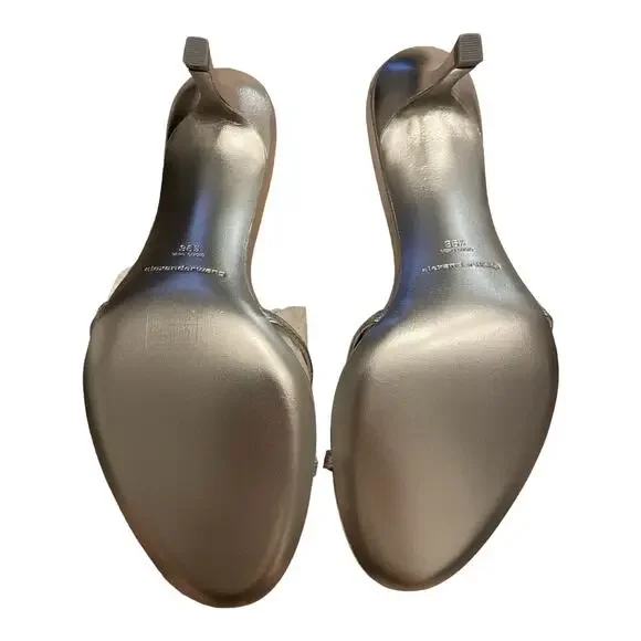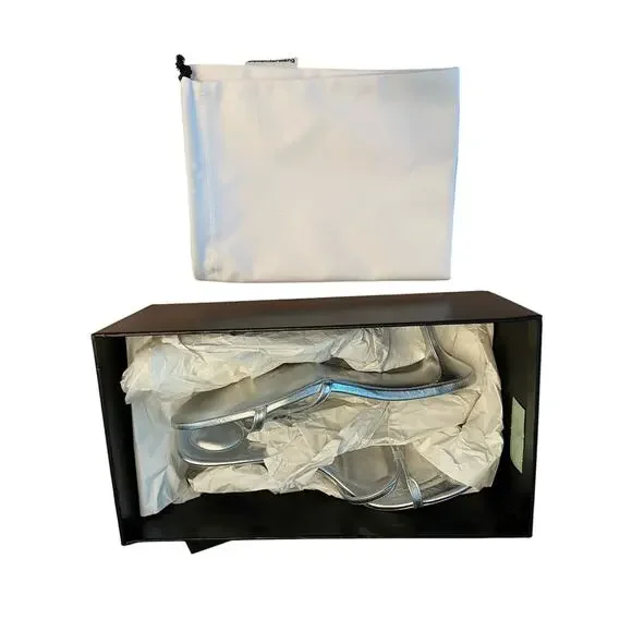Alexander Wang Lucienne 65 Strappy Slide Sandals Leather Metallic Silver 36.5