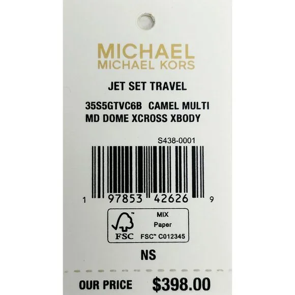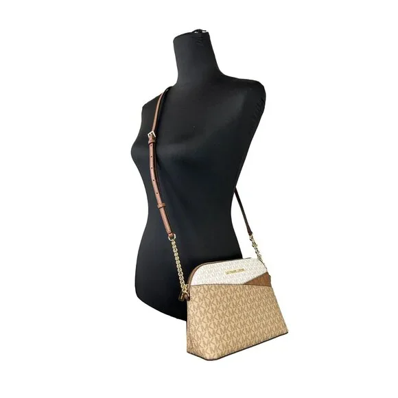 Style: Michael Kors Jet Set Travel Medium X Cross Dome Crossbody Bag (Camel Multi)Material: Saffiano Leather / PVCFeatures: 2 Inner Slip Pockets, 1 Outer Slip Pocket, Adjustable Chain Accented Crossbody StrapMeasures: 9" W x 7" H x 3.5" DSKU 26269All offers are welcome! Professional seller, (Please look at our pictures as that is exactly what you are purchasing)Once payment has been received, the item will be shipped out within one business day or earlier. Once the item is shipped, tracking information will automatically be uploaded. All purchases after 12 pm (EST) will be shipped the next business day.Tags: Designer bag, Classy bag, Luxury Bag, Classic, Feminine, Cute bag, Party bag, Night out, Gift, Crossbody, Satchel, Handbag, Purse,retroglam, modernroyalty, royalty, regal, Skirtsuit, careerchic, formal, businessformal, businessprofessional
