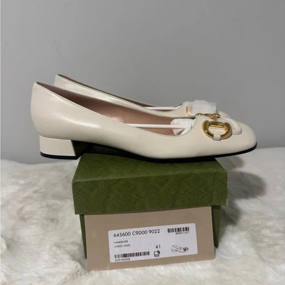 $449 Brand New Malaga Kid Mystic White Horsebit Leather Flats EU 41/US11
