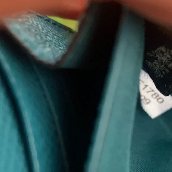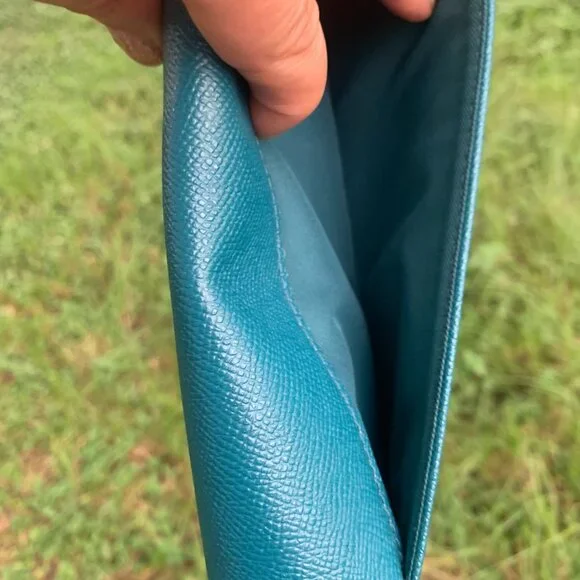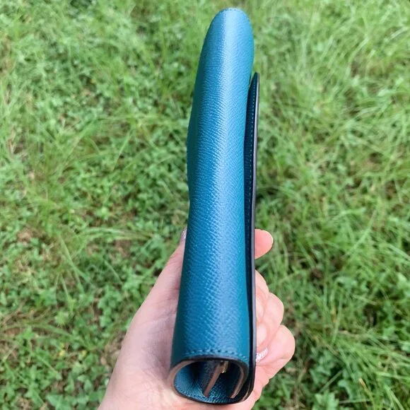 Product DetailsCrossgrain leatherEight credit card slotsFull-length bill compartmentSnap closureOutside zip coin pocket7 3/4" (L) x 3 1/2" (H)Style No. F54009 She has a little crackon the edge.please see the pictures.