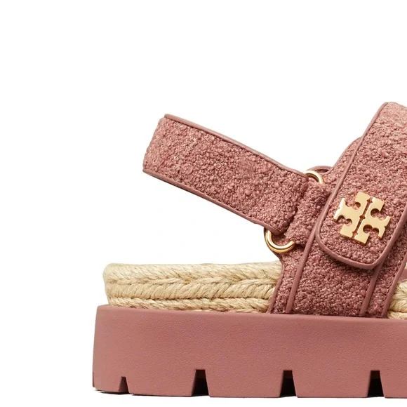 Experience the perfect blend of class and comfort wearing the Tory Burch Kira Rope Sport Sandal. Crafted from leather upper, lining and insole, this pair of sandals features open round toe, slingback strap, dual hook-and-loop closure strap with brand detailing and brand name embossed on the footbed.Leather Working Group-certified tannery (LWG).Rubber outsole.