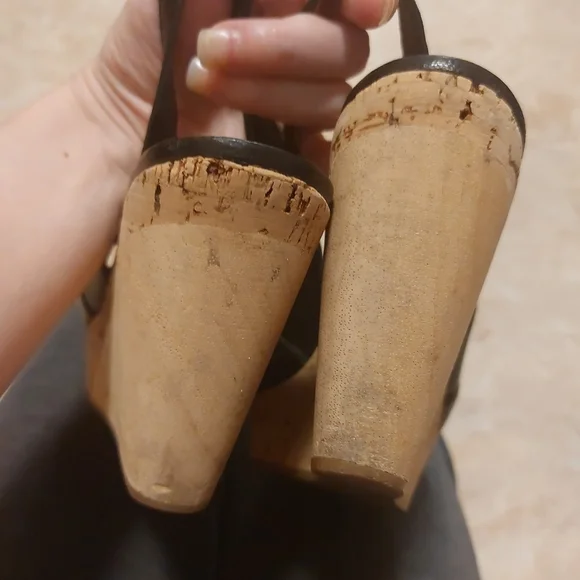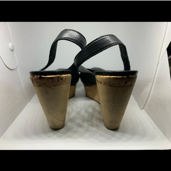 leather wedges slingback sandals size 36, fit like 6.5, in good condition, heel 9 cm, front platform is 3 cm. have a little wear on a heel, see all pictures