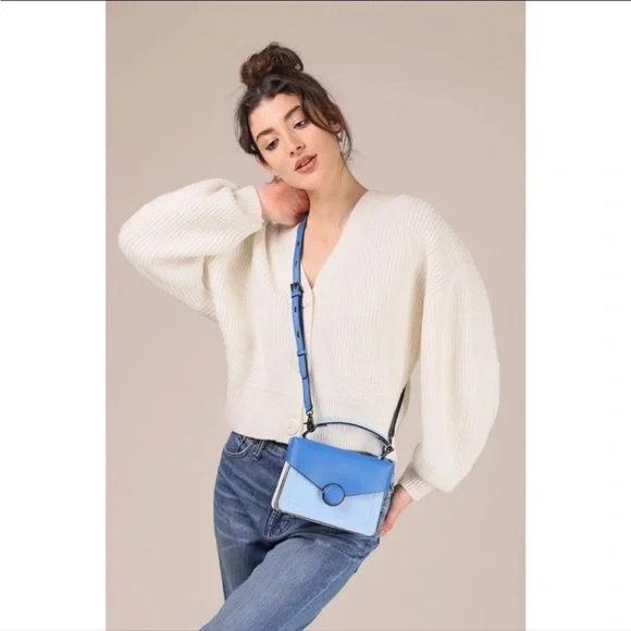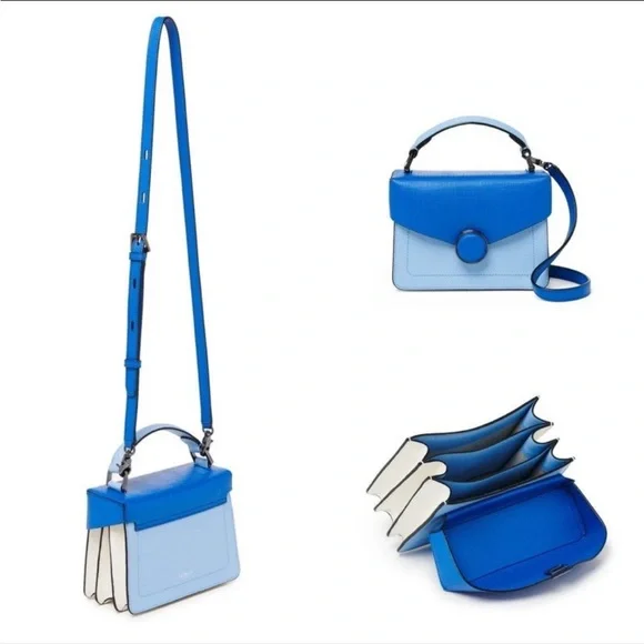 Botkier Nolita Crossbody in Blue Cadet Imported saffiano leatherGunmetal hardwarePushlock hinged button front flap closureLeather top handleAdjustable/detachable leather crossboy strapTri-fold interior with two card slotsCanvas liningNew with tagsMEASUREMENTSHeight 5.5 in (14 cm)Length 7.25 in (19 cm)Depth 3 in (8 cm)Handle Drop 2.5 in (6 cm)Strap Drop 22 in (56 cm)