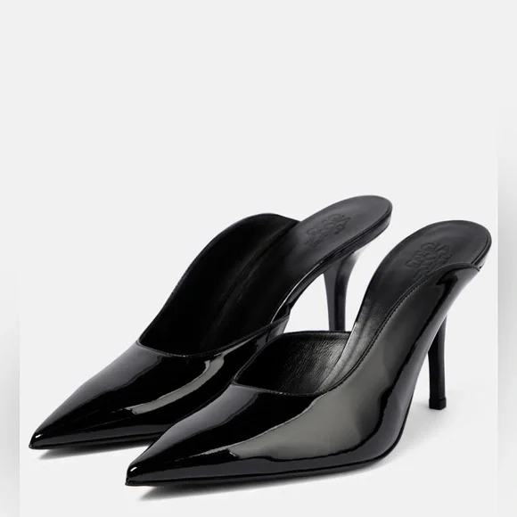Gia Borghini Abella Patent Pointed Toe High Heel Mules Shoes NWT