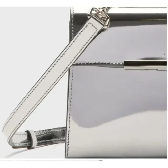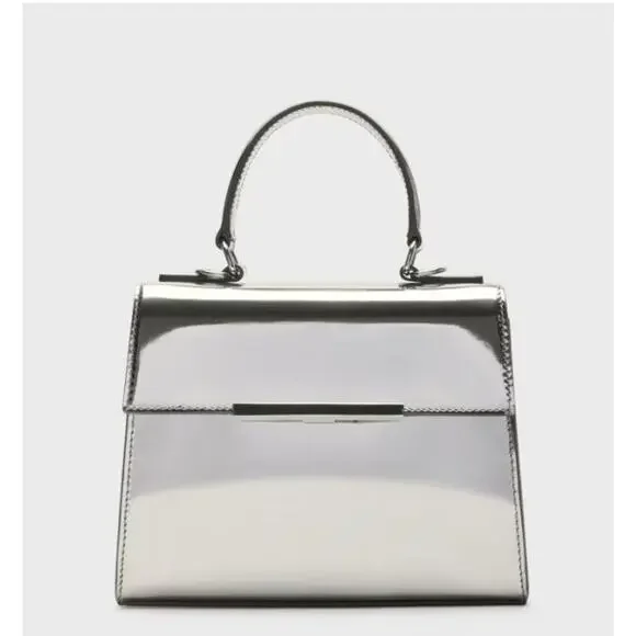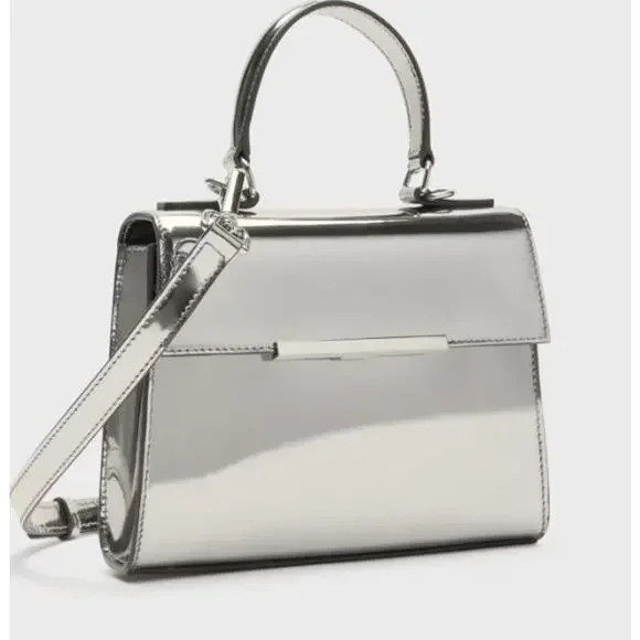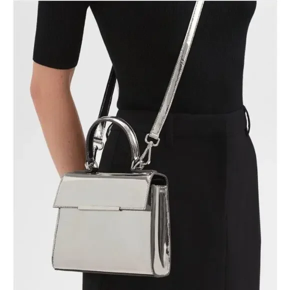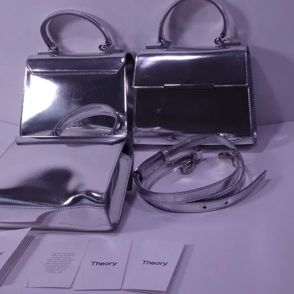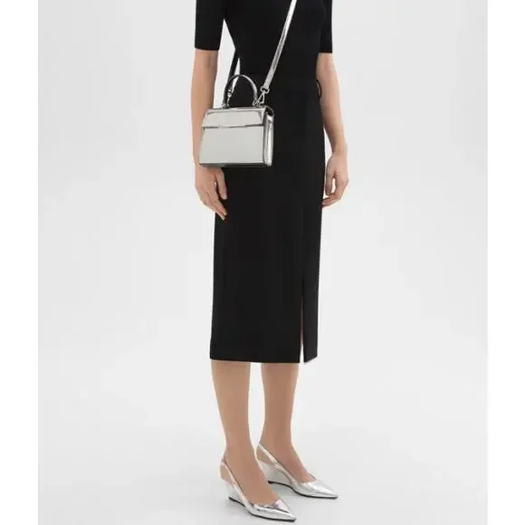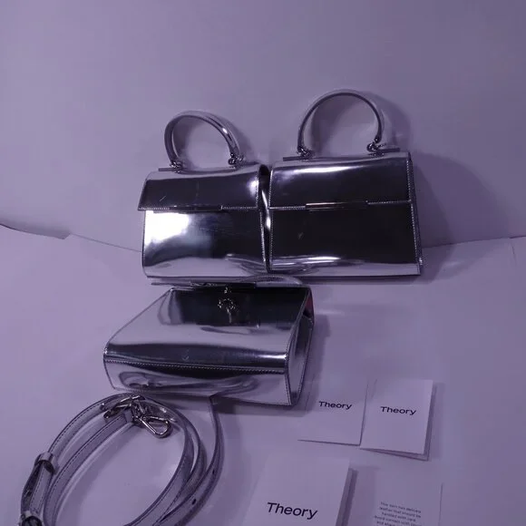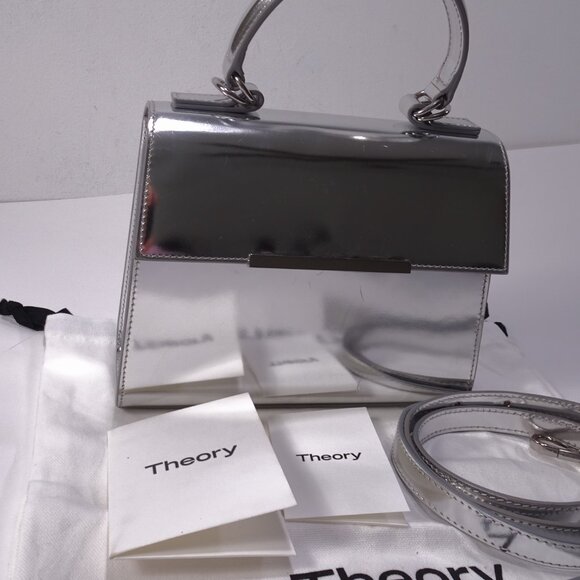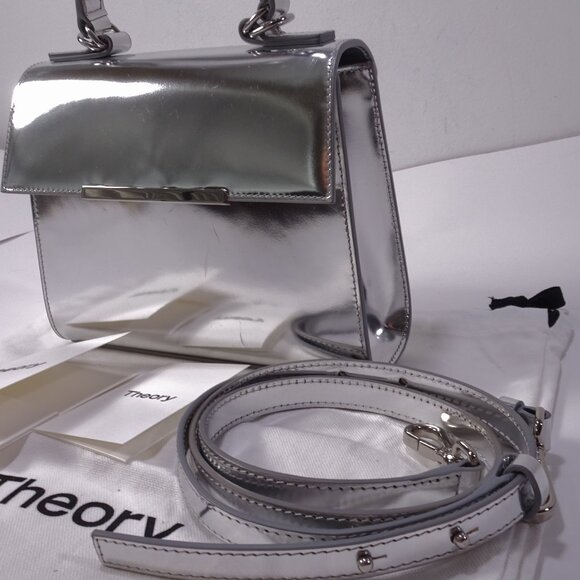 Theory Small Top Handle Crossbody Fold over Bag Metallic Leathr NWT 698 IRRG