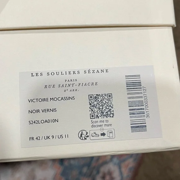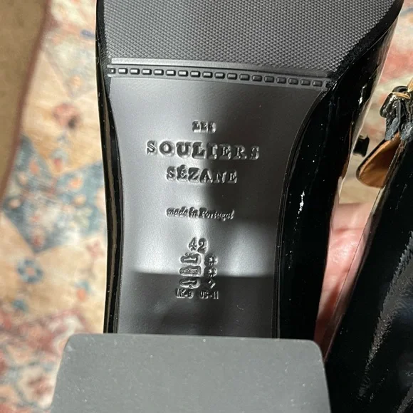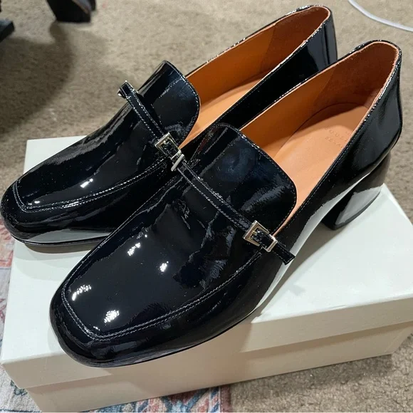 Selling for: Tezza BartonSize: 11Condition: Brand new in boxMinimalist loafersItem made in our Portuguese atelierPatent leather exteriorLeather lining and insoleRubber outsolePatent leather wrapped heelHeel height: 5 cm / 2 in