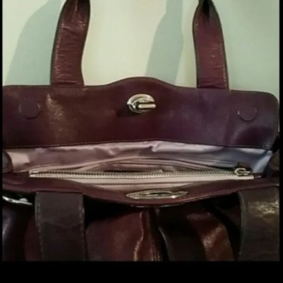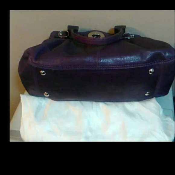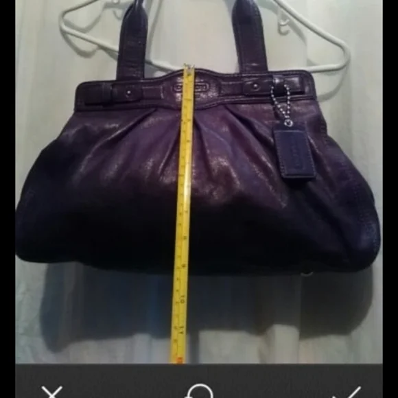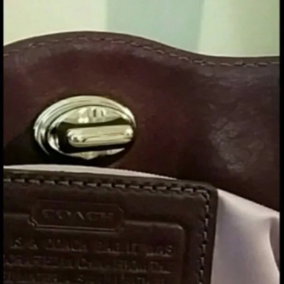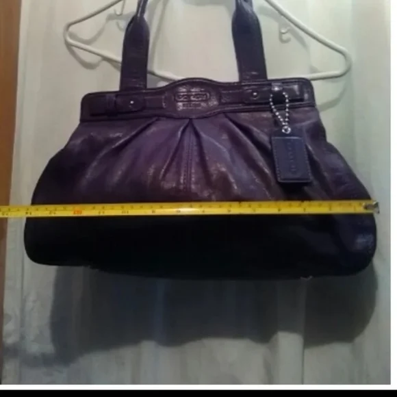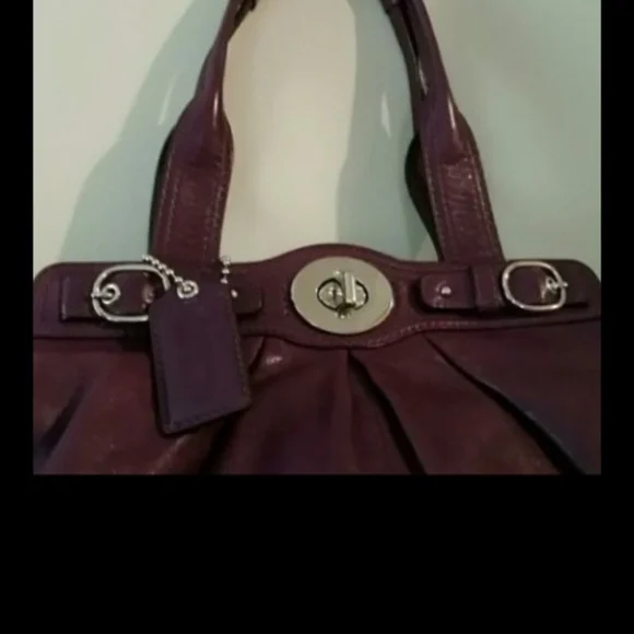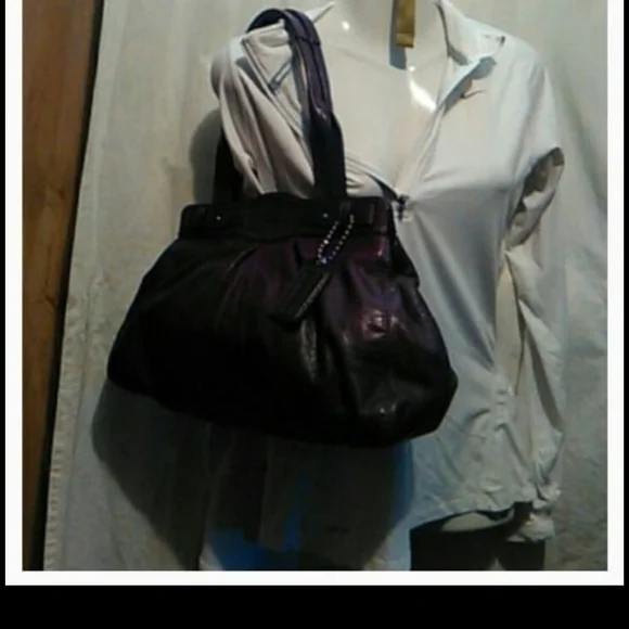 Deep burgundy color.turn lock closure.zip pockets size 15+10 from smoke free home Coach hobo bag in a rich purple hue. Features a stylish design with elegant hardware.