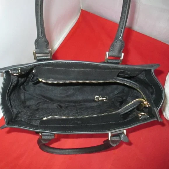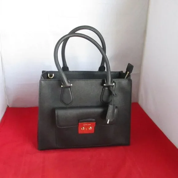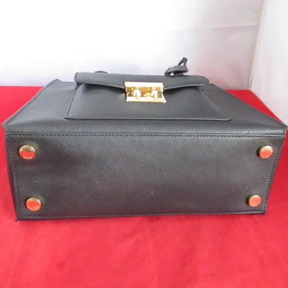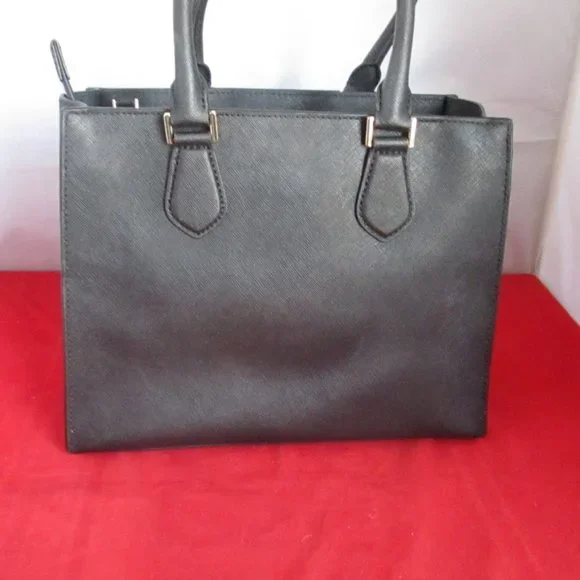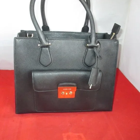 This bag was purchased from a High End Department Store. This bag was either a store display or it was sold and returned to the store for one reason or the other. This bag comes with sales tag and dust bag. ( Tag is detached )Retail Price $358.00 Guaranteed Authentic. Look at all the pictures.#024-9/16-84GUARANTEED AUTHENTIC - THE SHOULDER STRAP IS MISSING - THERE ARE LIGHT SCUFFS ON THE LOCKModel: 30T6GBDT2LUPC: 190049460948 Material: Saffiano LeatherHardware: Gold~ToneColor: BlackInterior: Black Mk Signature Fabric Lining 1 Zip & 4 Open Slip Pockets; Key FobApproximate Measurements: L 12" xH 9" xD 4 1/2"