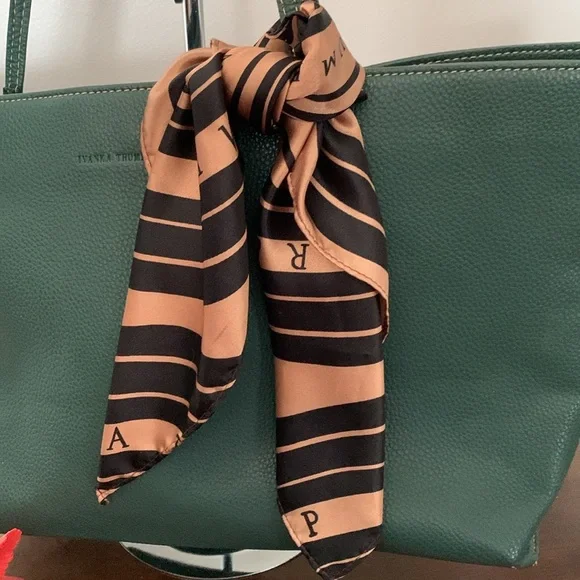 Excellent Condition has slight wear on bottom of bag. See pics for full details.Scarf is brown & black with Ivanka Trump name.Handles are thin but very sturdy.Great bag for every day, travel, college or business.Beautiful gold lining with Ivanka Trump name brand.Interior Features one zipper pocket, two slip pockets and one card size slip pocket for easy access to your card.