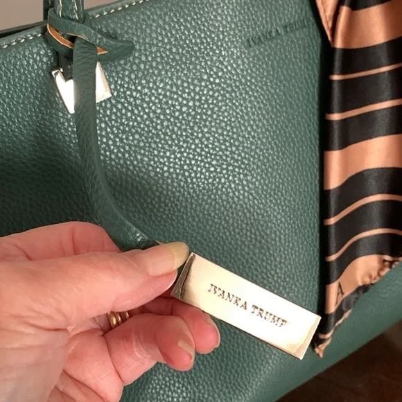 Ivanka Trump Green Tote Shoulder Bag with IV Logo on Scarf