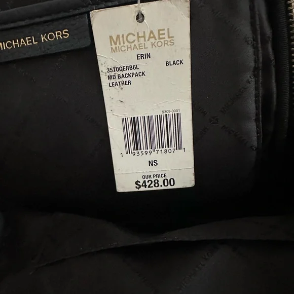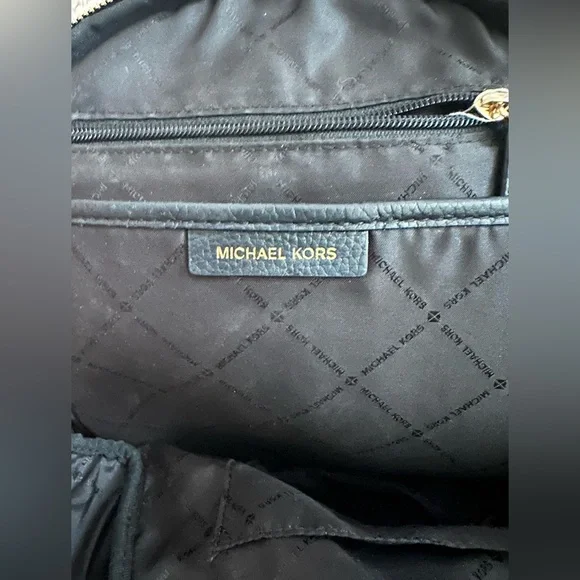 This Michael Kors backpack showcases a sophisticated black design accented with gold-tone hardware and studded embellishments. Crafted from high-quality materials, it offers a sleek and modern look, perfect for elevating your everyday style. Original tag attached . Used in great condition. This bag measures about 12” x12”