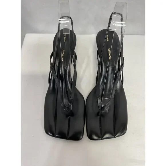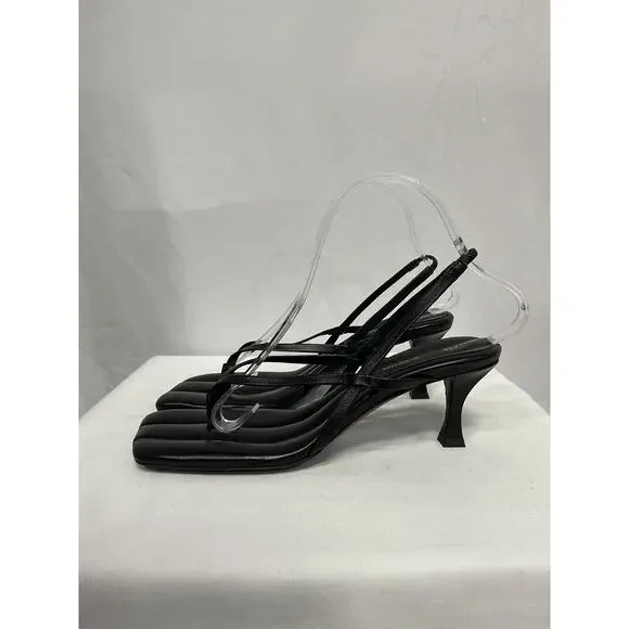 Proenza Schouler ´Leather´ Black Slingback Sandals Size 38: grained nappa leather heeled sandals feature an open square toe and thong-style strap, the ankle strap is partially elasticized, a logo is stamped at the quilted footbed with logo hardware at the leather outsole, the stiletto heel measures 2.5 inches.