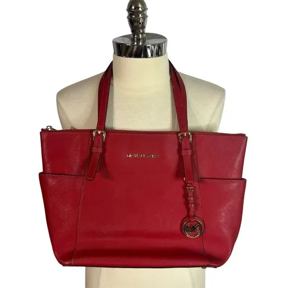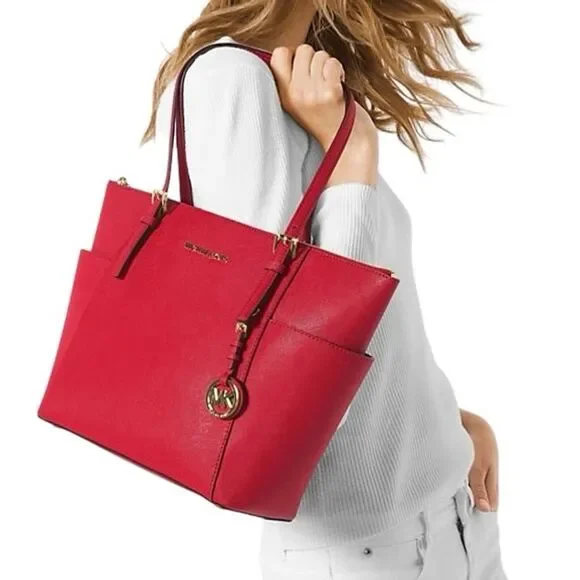 Michael Kors Jet Set Large Cherry Red Leather Tote Bag Women´s Handbag