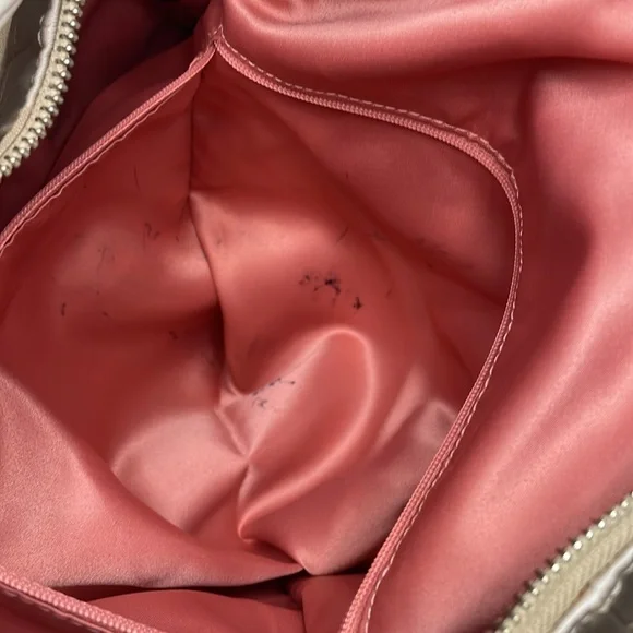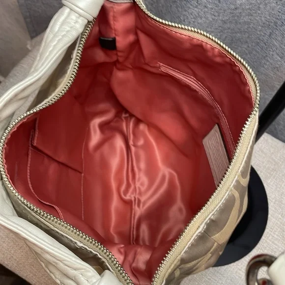 Coach Satin White/Champagne Shoulder Crossbody BagExcellent exterior and hardware. Some minor marks to interior and interior zip pocket.Silver hardwareWhite leather, champagne...