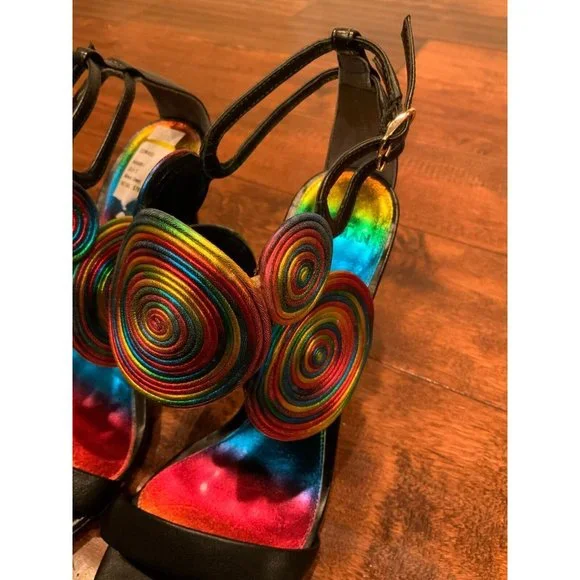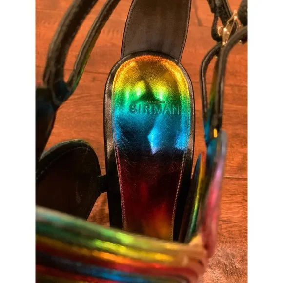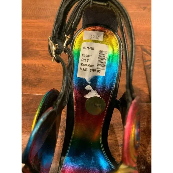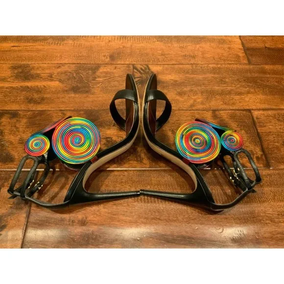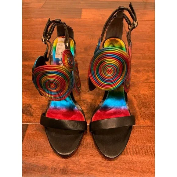 Women´s heels from Alexandre BirmanEUR Size: 38US (Converted) Size: 7.5Heel: 4.0"* Black leather body/base and heels* Rainbow spiral/circular detail* Open toe* Stiletto...